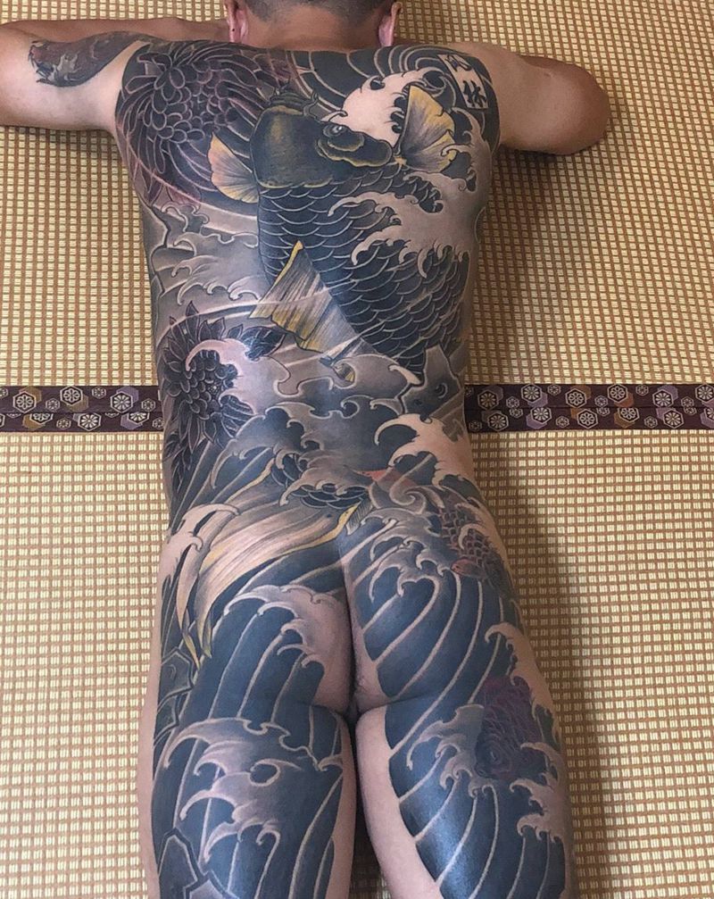 传统满背鱼纹身图片