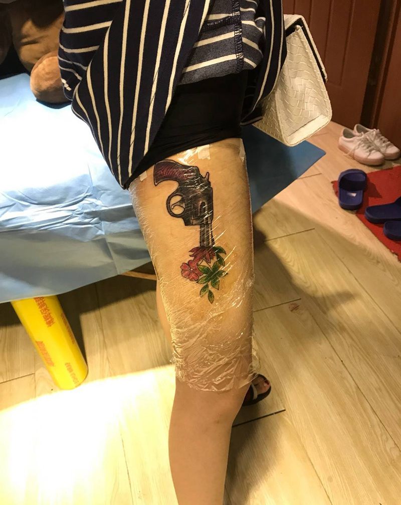 • T网红王老大花腿龙纹身图片_腿部新传统纹身图案