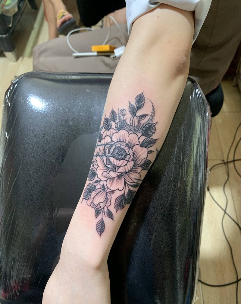 当前位置: 首页 >吉林省长春市纹身店-铭纹刺青纹身图案>素花纹身图片_手臂纹身图案