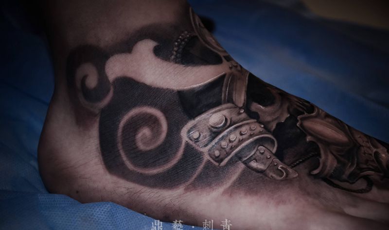 鬼武士纹身图片_脚部欧美写实新传统纹身图案