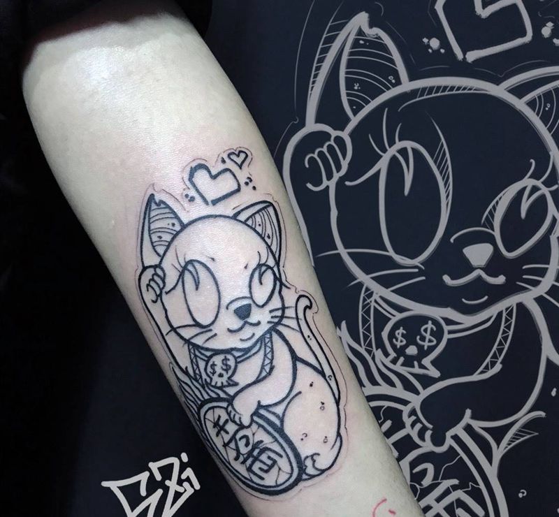 招财猫纹身图片_手部手臂Old SchoolNew School纹身图案