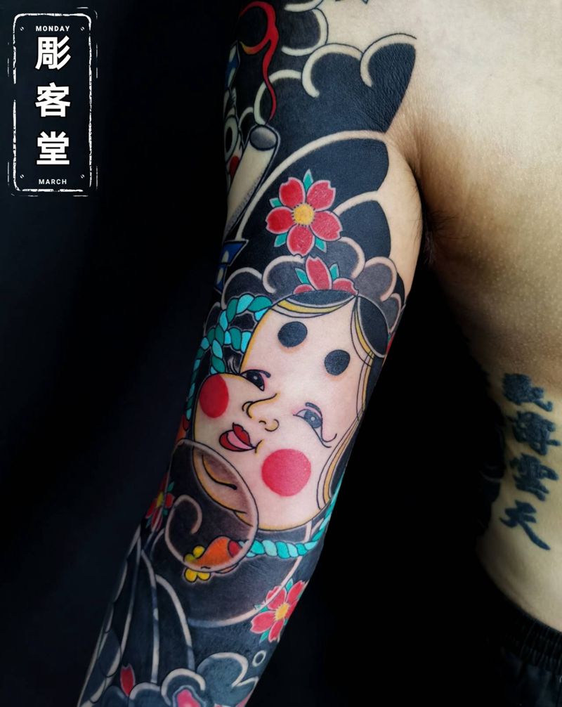 当前位置: 首页 >吉林省长春市纹身店-彫客堂刺青纹身图案>修改添加花臂火男能面纹身图片_手臂老传统纹身图案