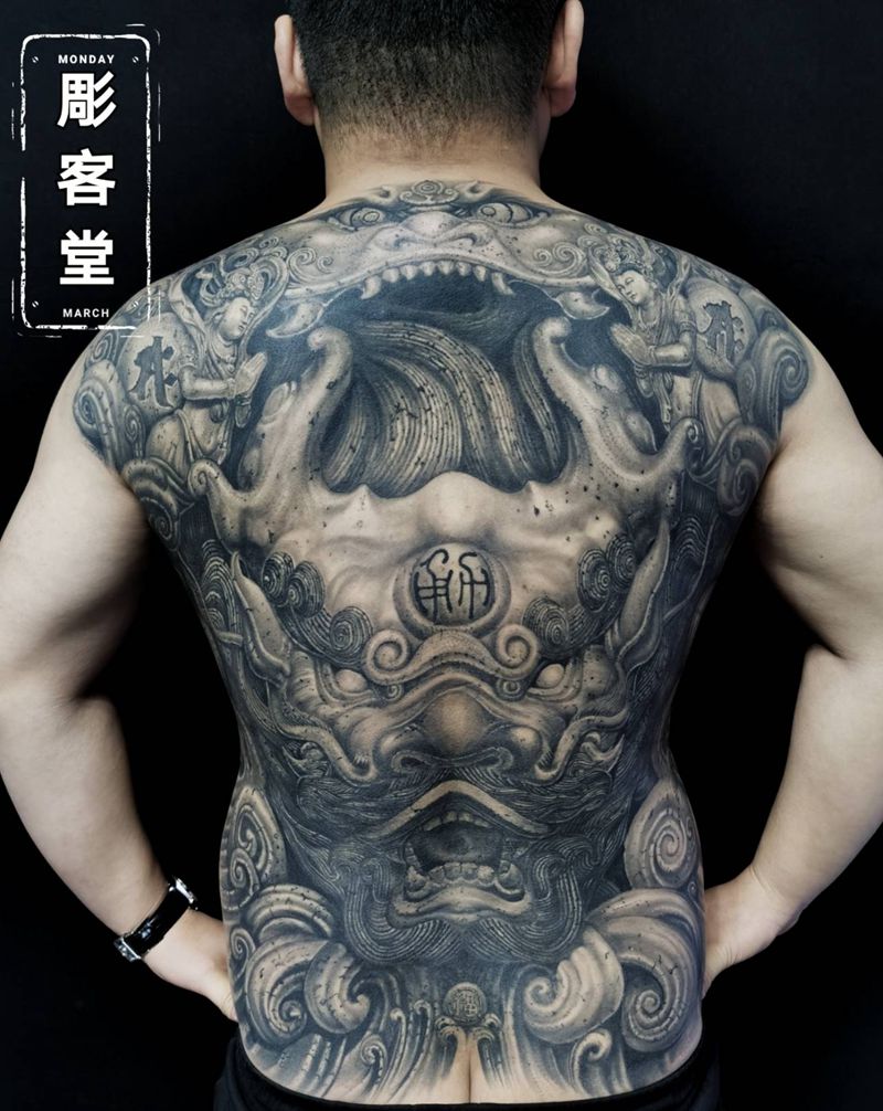 • 黑灰满背纹身图案