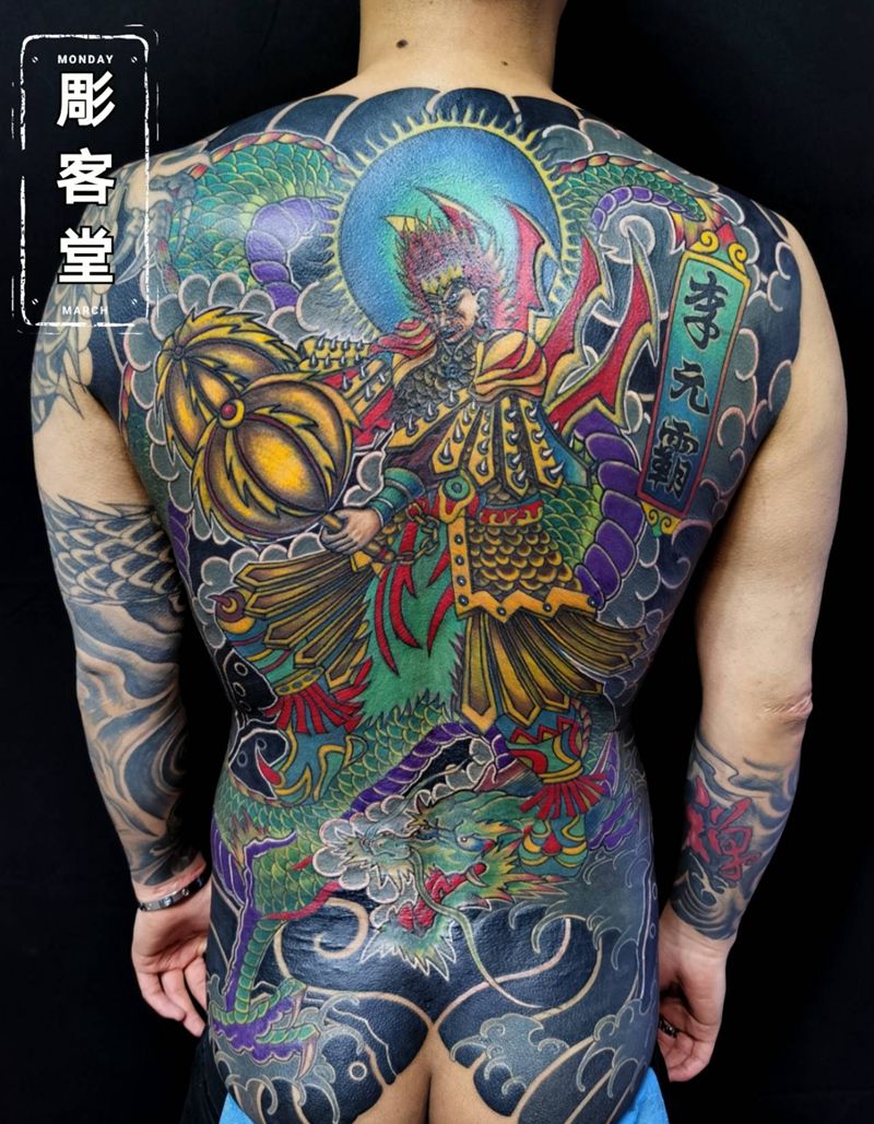 黑灰满背纹身图案