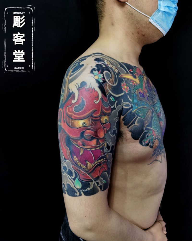当前位置: 首页 >吉林省长春市纹身店-彫客堂刺青纹身图案>花胸半甲遮盖恢复一年后效果纹身图片_手臂胸部新传统老传统纹身图案
