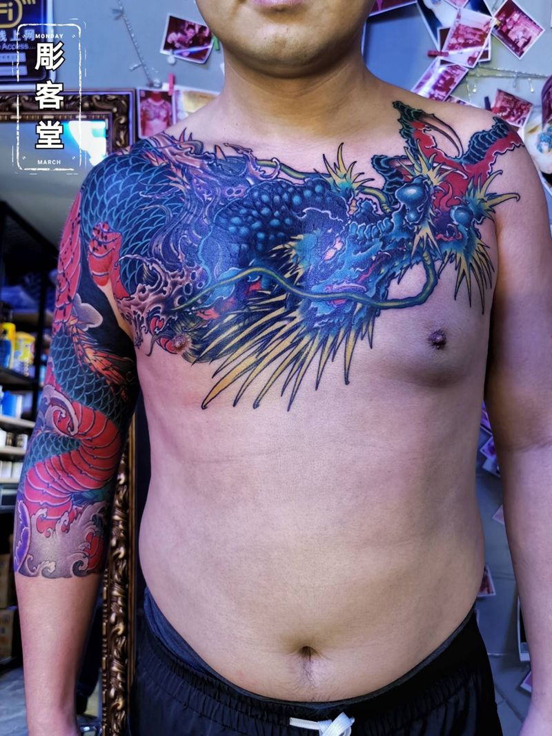 当前位置: 首页 >吉林省长春市纹身店-彫客堂刺青纹身图案>披肩龙遮盖前后对比纹身图片_胸部手臂新传统纹身图案