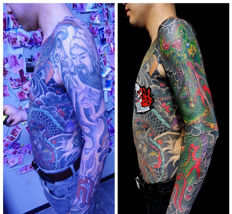 当前位置: 首页 >吉林省长春市纹身店-彫客堂刺青纹身图案>网红浪子燕青遮盖花臂纹身图片_手臂老传统纹身图案