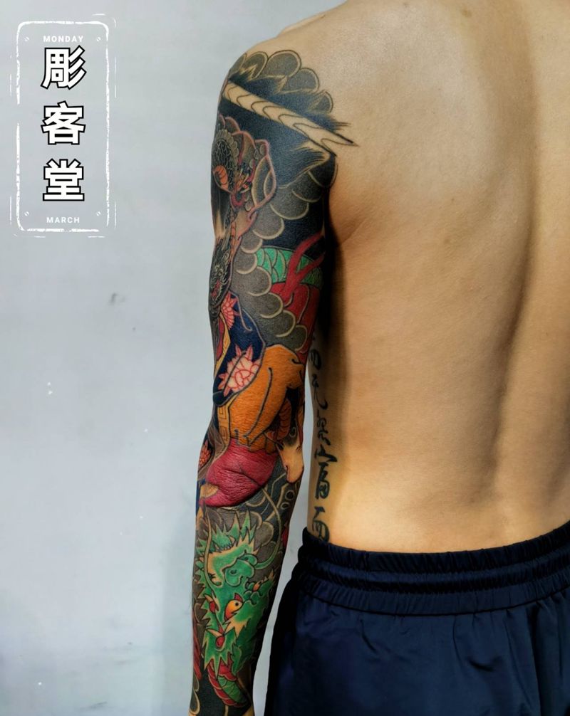 当前位置: 首页 >吉林省长春市纹身店-彫客堂刺青纹身图案>网红姜宽花臂九纹龙史进纹身图片_手臂老传统纹身图案
