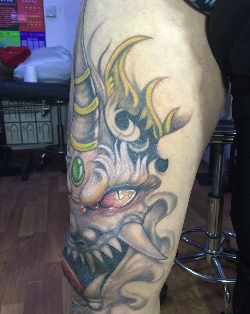 • T网红王老大花腿龙纹身图片_腿部新传统纹身图案