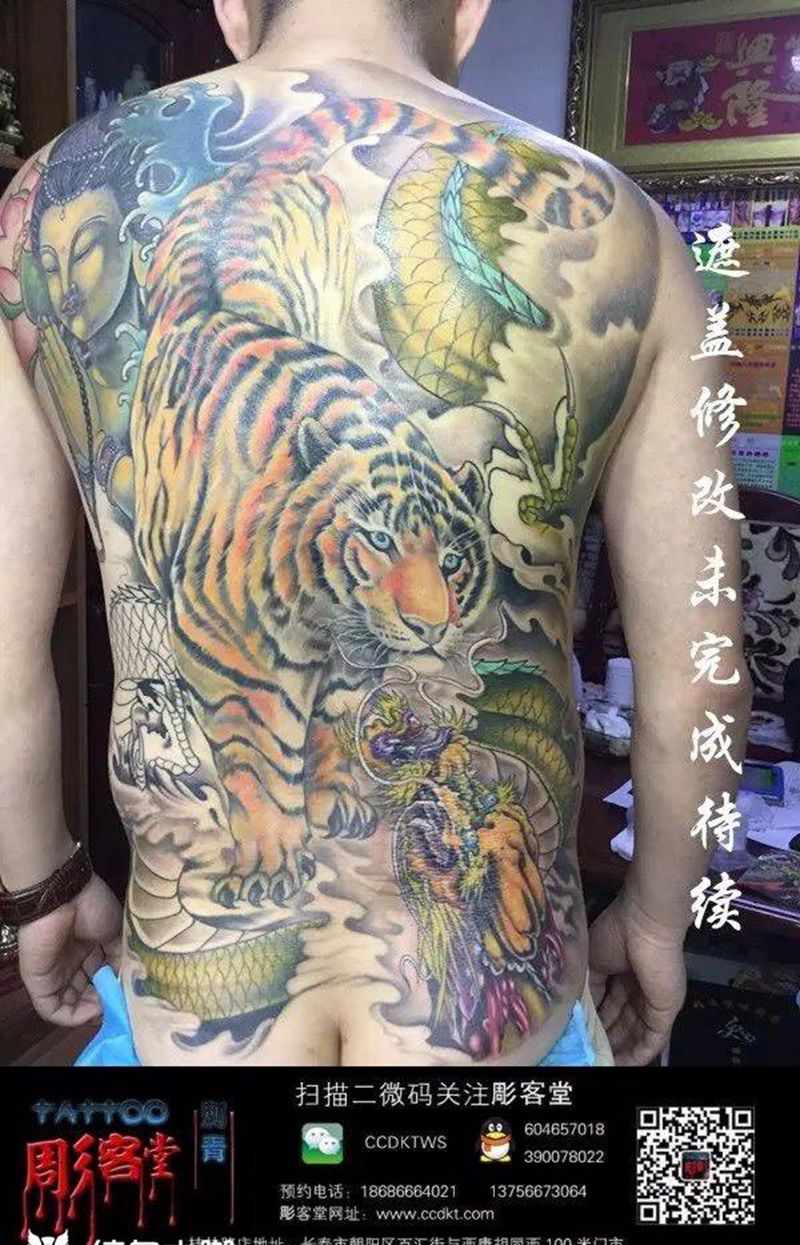 黑灰满背纹身图案