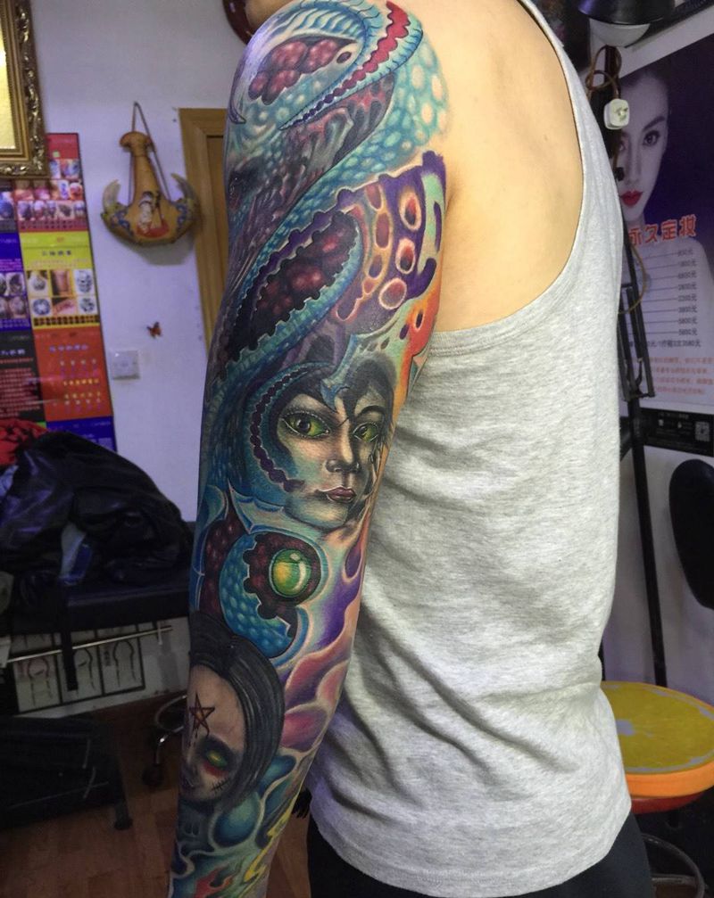 当前位置: 首页 >吉林省长春市纹身店-彫客堂刺青纹身图案>修改遮盖花臂前后纹身图片