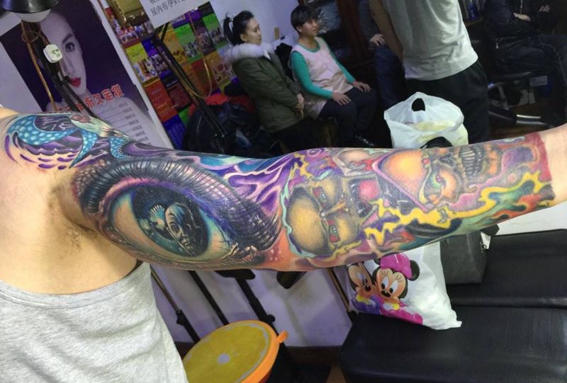 当前位置: 首页 >吉林省长春市纹身店-彫客堂刺青纹身图案>修改遮盖花臂前后纹身图片