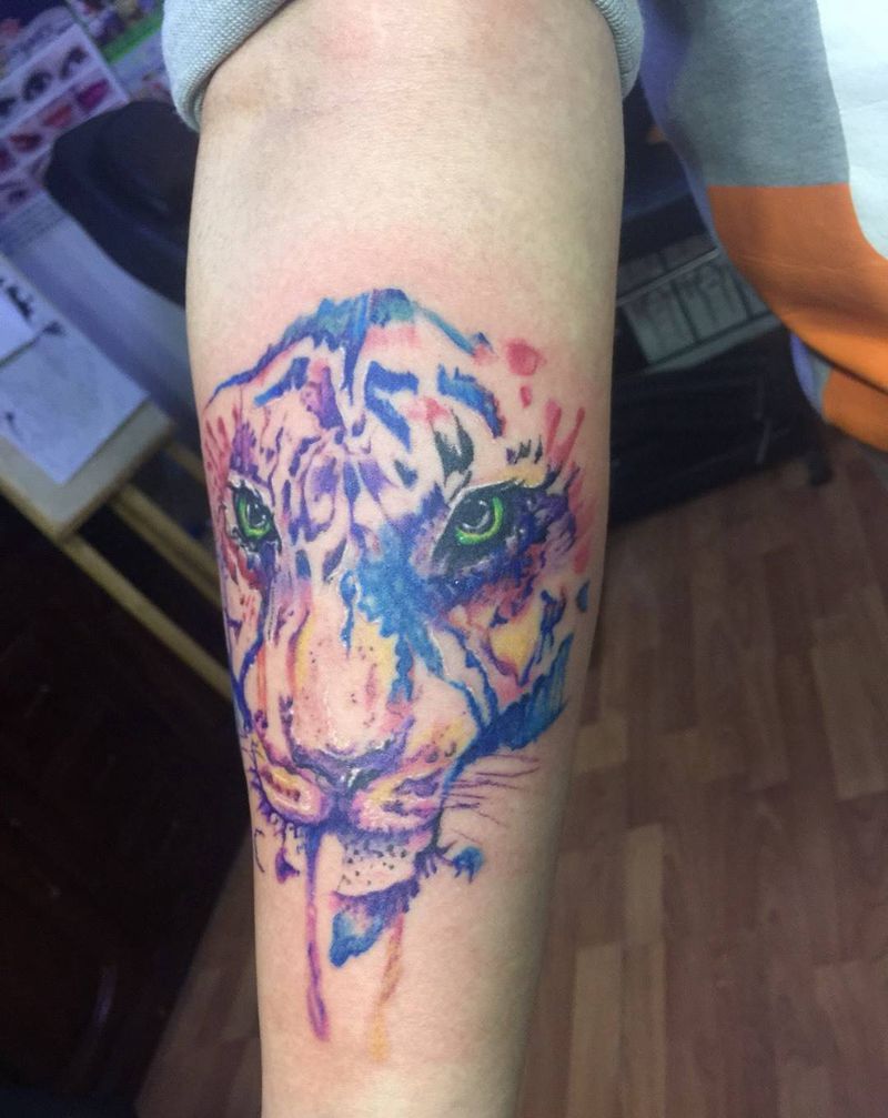 当前位置: 首页 >吉林省长春市纹身店-彫客堂刺青纹身图案>水彩 虎头纹身图片_成品手臂国画动物纹身图案