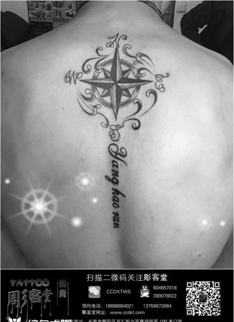 当前位置: 首页 >吉林省长春市纹身店-彫客堂刺青纹身图案>指南针英文纹身图片_背部清新几何字符纹身图案