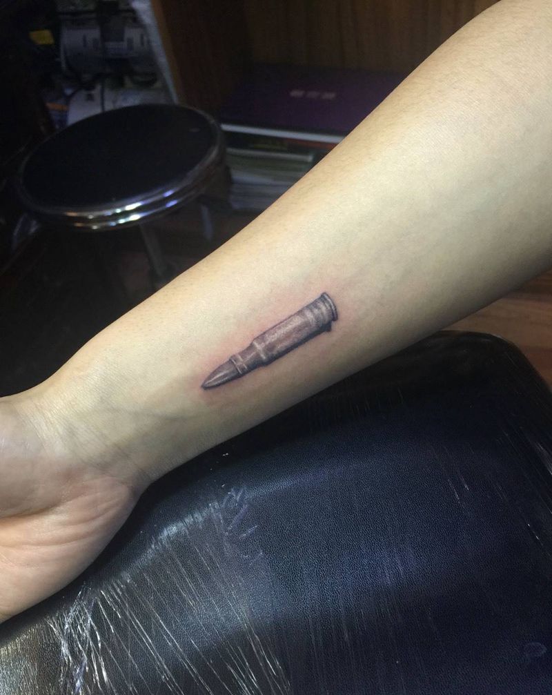 子弹头纹身图片_成品手臂写实清新原创静物纹身图案