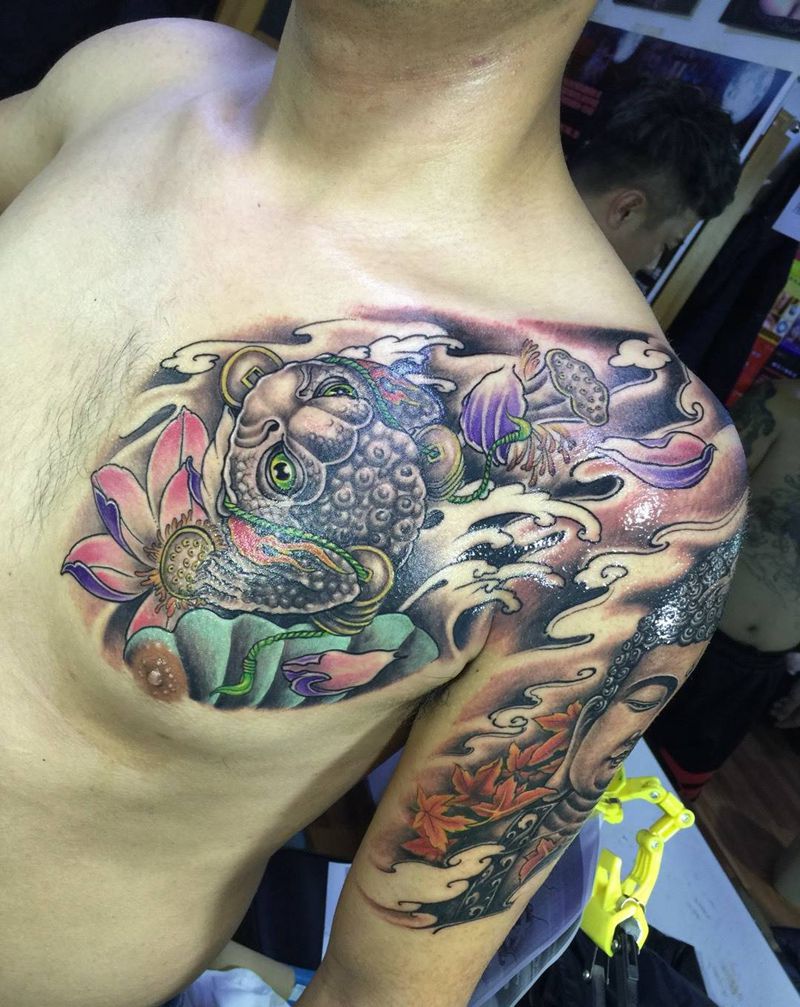 当前位置: 首页 >吉林省长春市纹身店-彫客堂刺青纹身图案>禅佛纹身图片_成品胸部手臂传统原创纹身图案