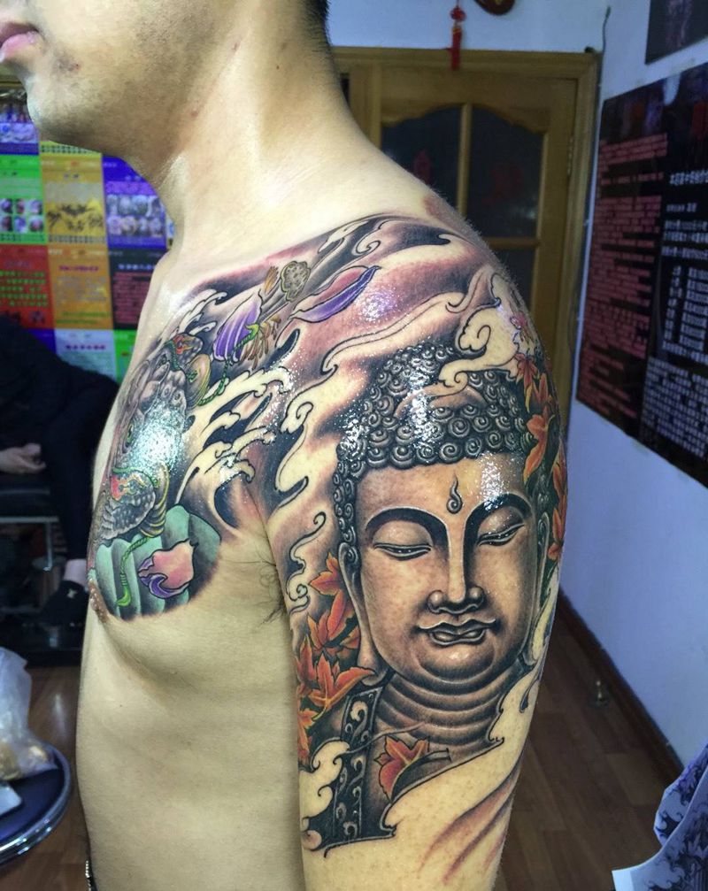 当前位置: 首页 >吉林省长春市纹身店-彫客堂刺青纹身图案>禅佛纹身图片_成品胸部手臂传统原创纹身图案