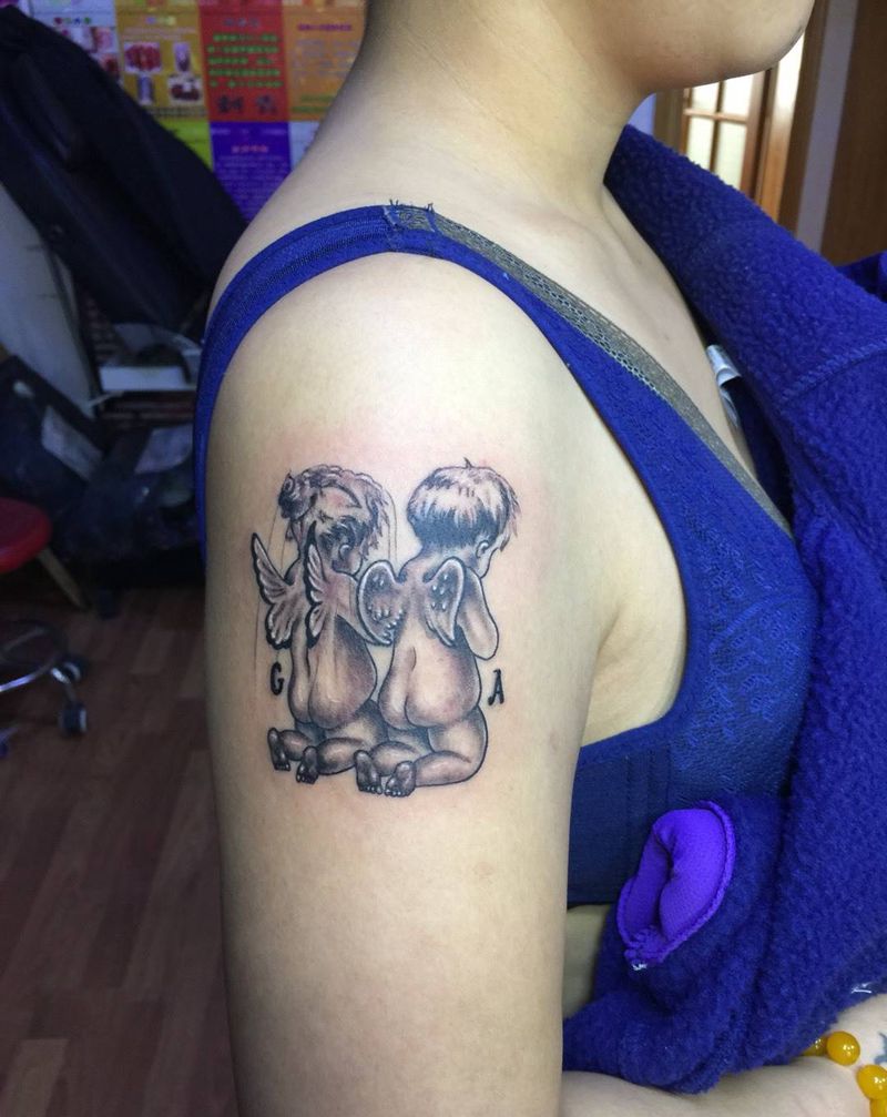 两个小天使纹身图片_成品肩部手臂清新人物纹身图案