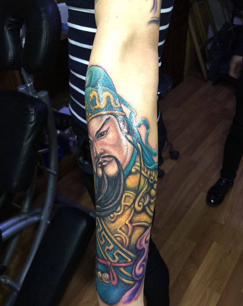 花臂关公部分 未完成待续纹身图片_手臂传统人物纹身图案