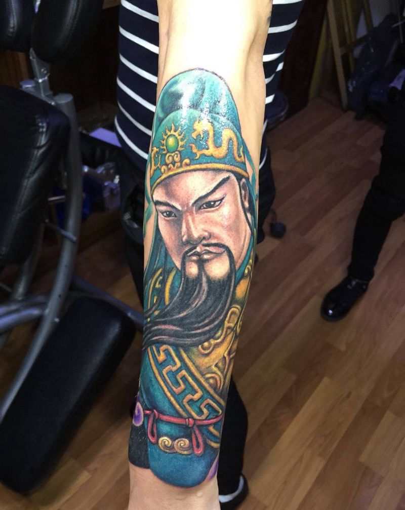 花臂关公部分 未完成待续纹身图片_手臂传统人物纹身图案