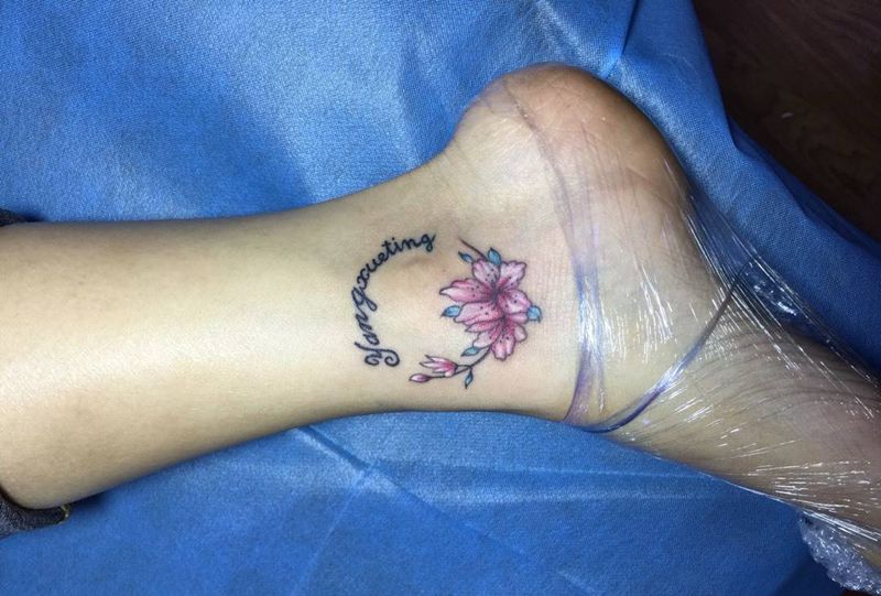 当前位置: 首页 >吉林省长春市纹身店-彫客堂刺青纹身图案>小桃花 字母纹身图片_成品脚部清新字符植物纹身图案