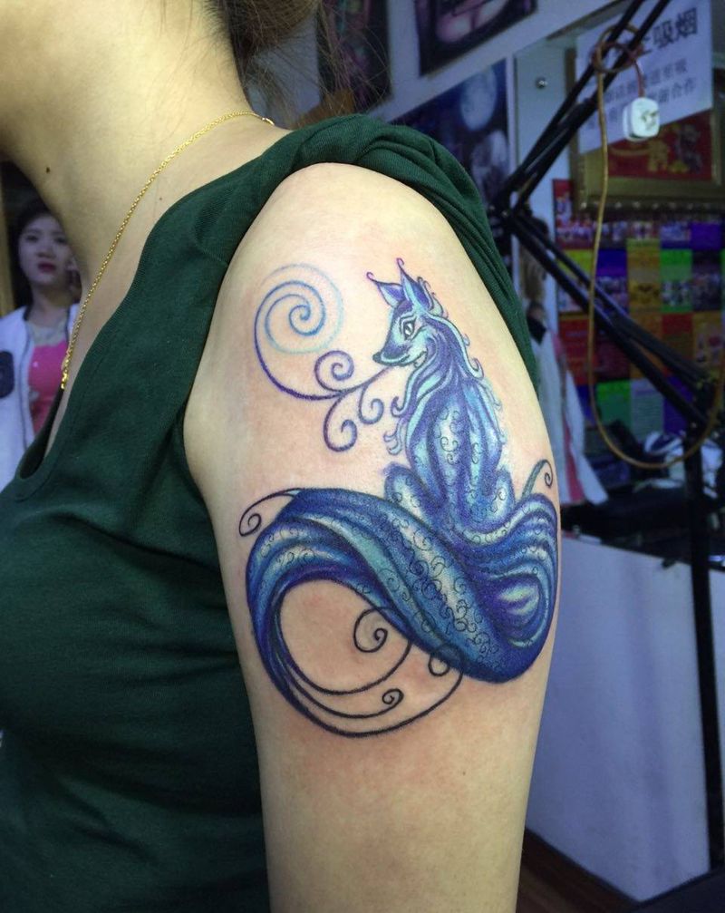 遮盖作品 蓝狐 遮盖前后纹身图片_成品手臂清新动物纹身图案