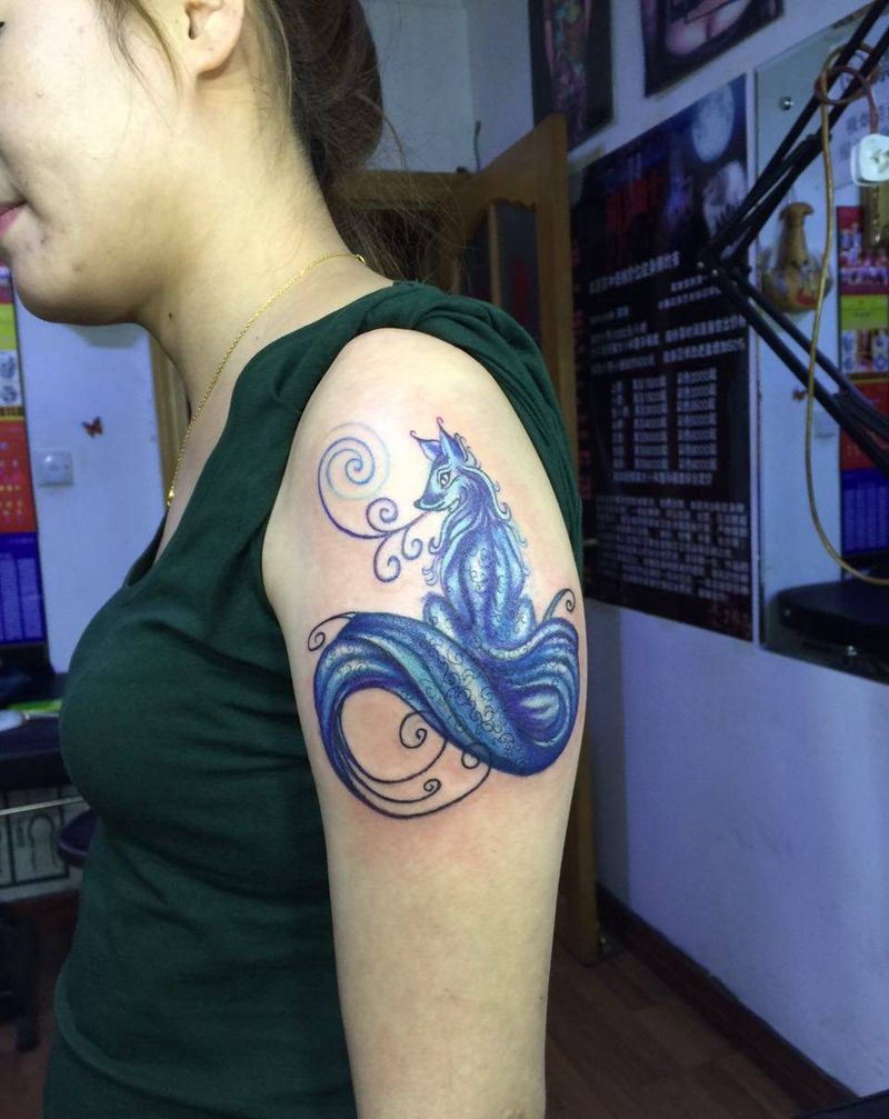 遮盖作品 蓝狐 遮盖前后纹身图片_成品手臂清新动物纹身图案