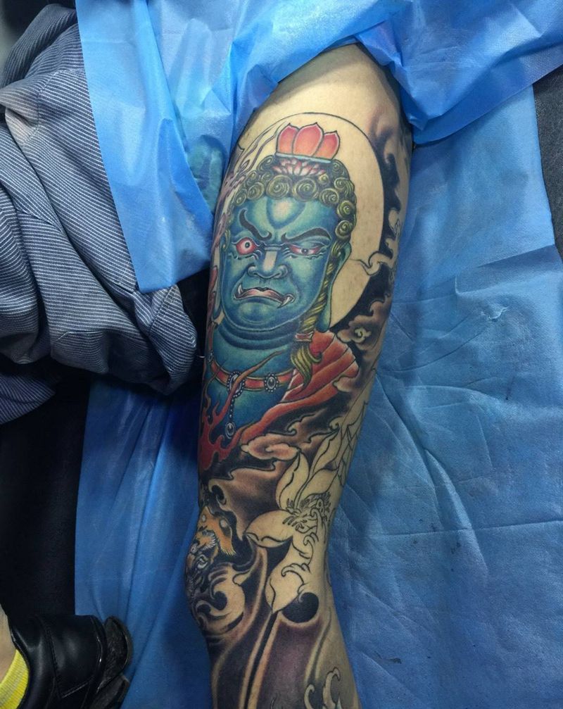 包腿 不动明王部分 未完成待续纹身图片_腿部传统人物纹身图案