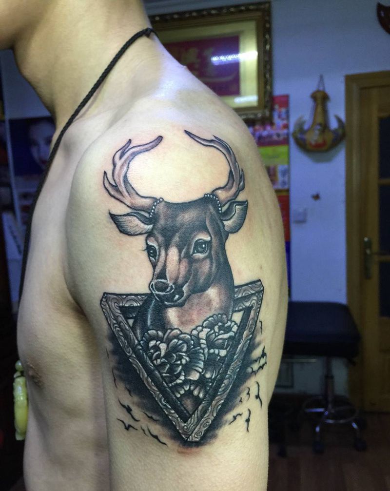 当前位置: 首页 >吉林省长春市纹身店-彫客堂刺青纹身图案>遮盖作品 小鹿纹身图片_成品手臂清新动物原创纹身图案