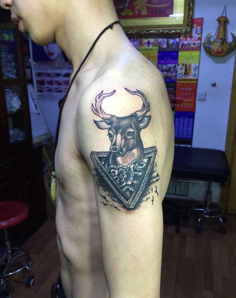 当前位置: 首页 >吉林省长春市纹身店-彫客堂刺青纹身图案>遮盖作品 小鹿纹身图片_成品手臂清新动物原创纹身图案