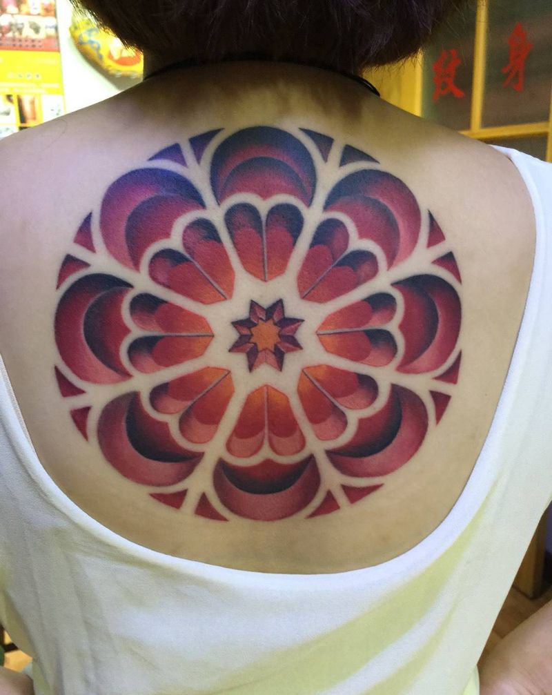 立体繁花纹身图片_欧美背部成品几何纹身图案