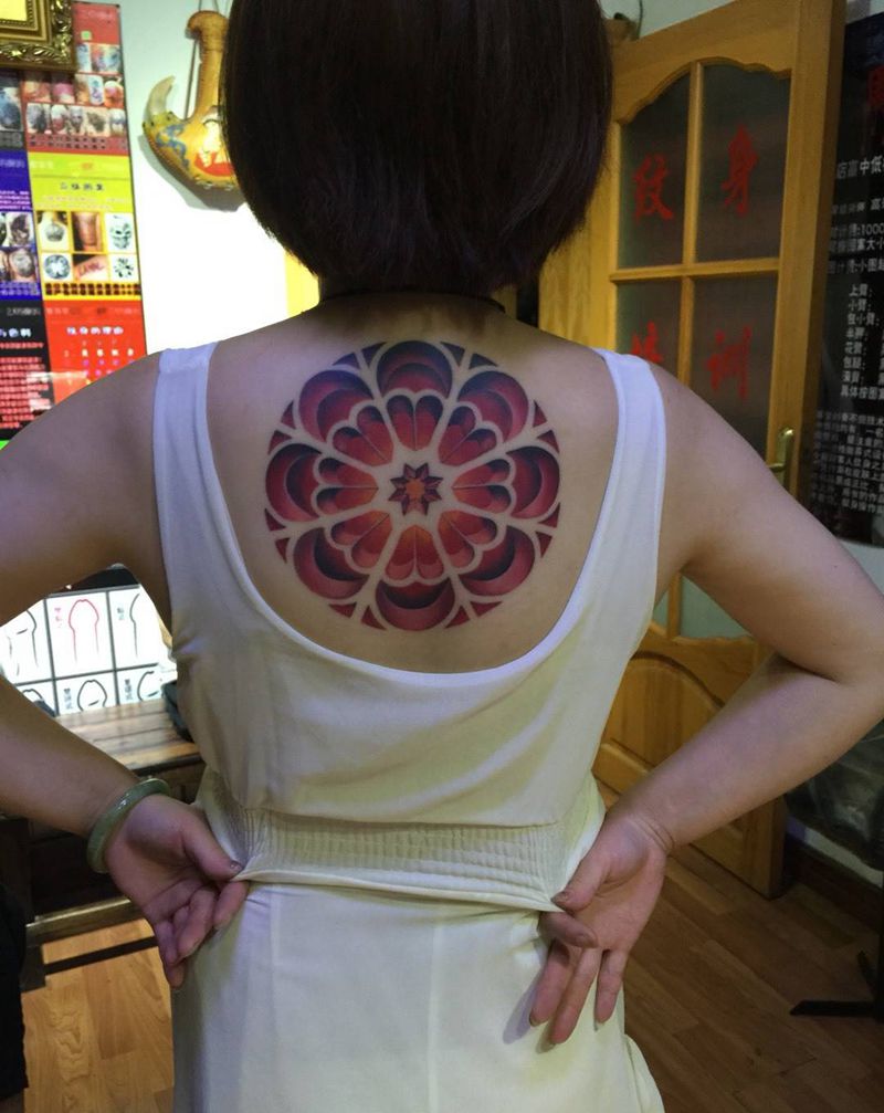 立体繁花纹身图片_欧美背部成品几何纹身图案