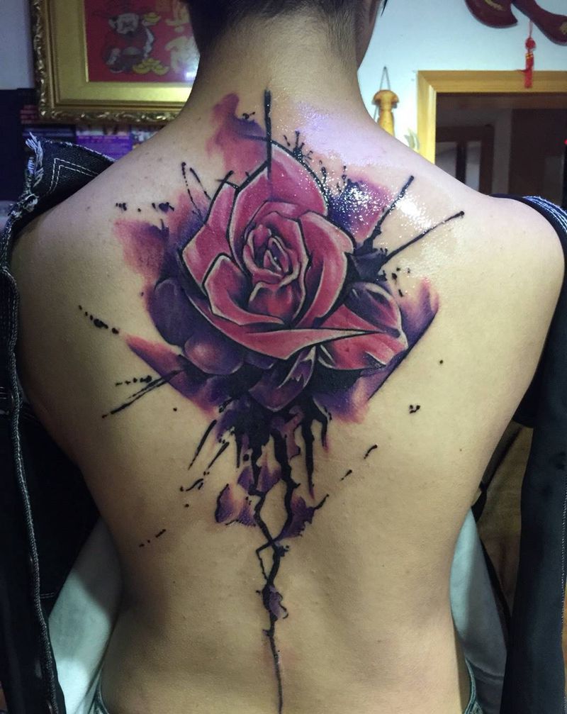 水彩玫瑰纹身图片_背部成品国画人物原创纹身图案