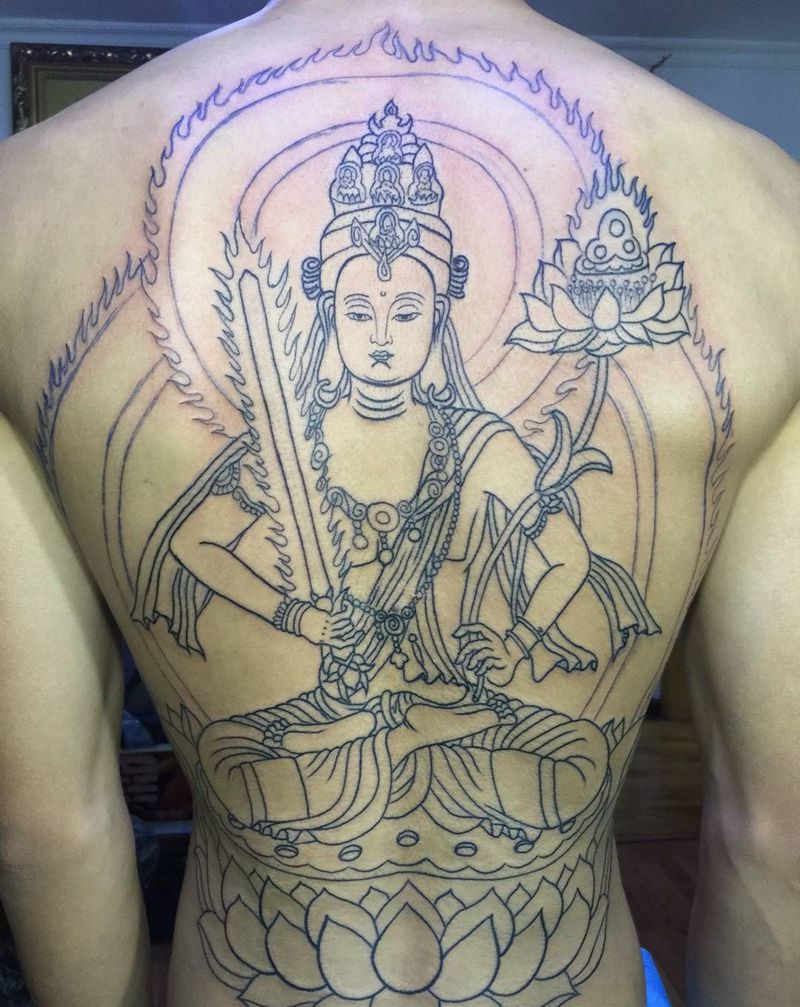 虚空藏菩萨 线条部分纹身图片_背部传统纹身图案