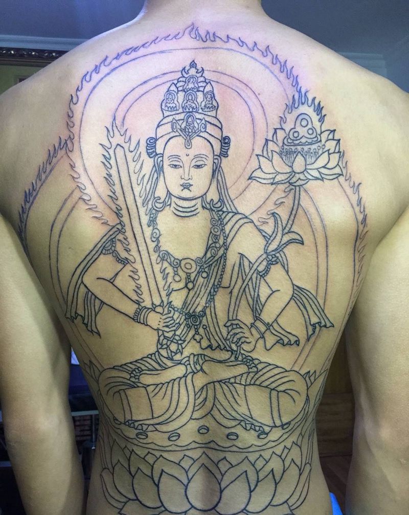 虚空藏菩萨 线条部分纹身图片_背部传统纹身图案