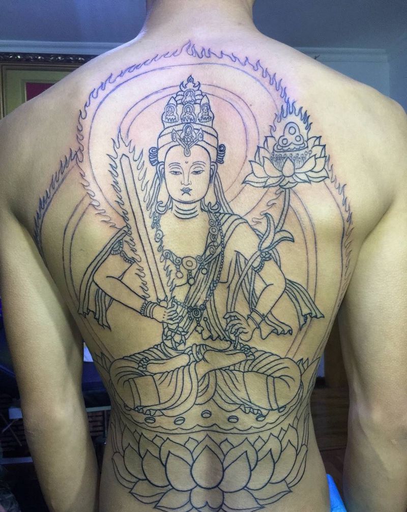 虚空藏菩萨 线条部分纹身图片_背部传统纹身图案