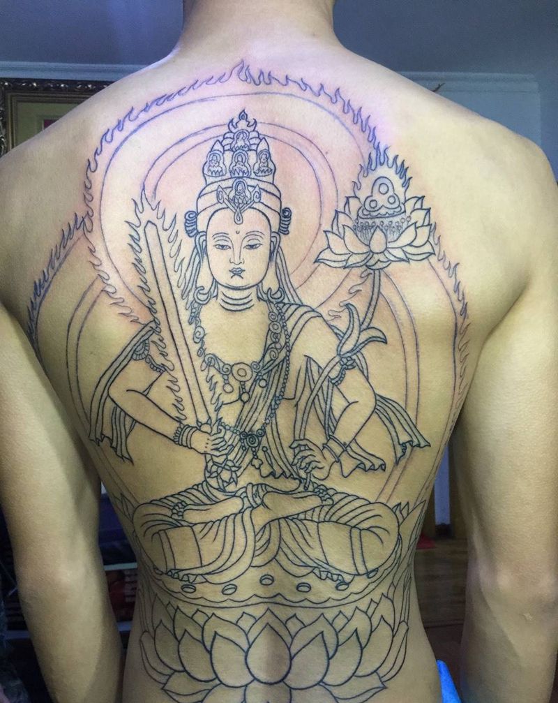 虚空藏菩萨 线条部分纹身图片_背部传统纹身图案
