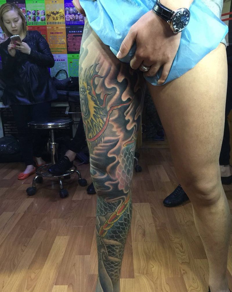 当前位置: 首页 >吉林省长春市纹身店-彫客堂刺青纹身图案>快手红人王老大包腿龙纹身图片_成品腿部传统动物原创纹身图案