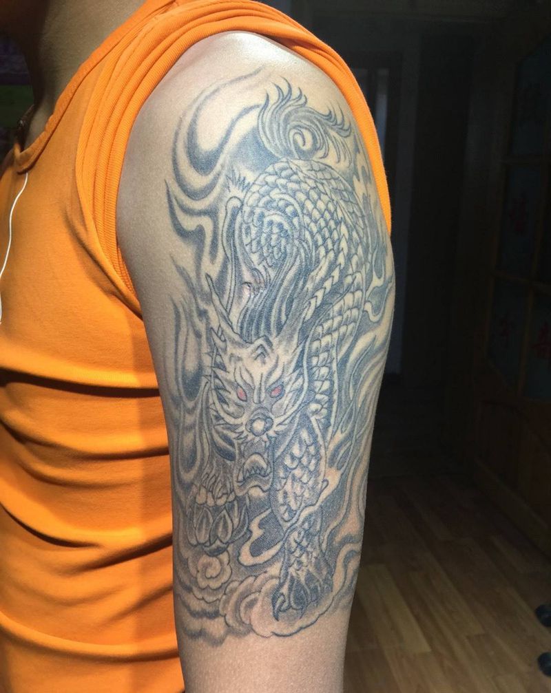 • T云龙九郎纹身图片_背部老传统云龙九郎纹身图案