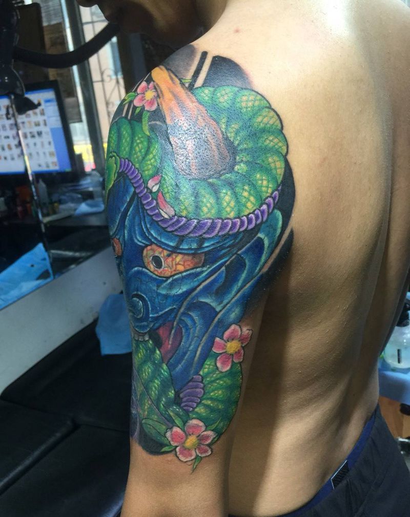 当前位置: 首页 >吉林省长春市纹身店-彫客堂刺青纹身图案>遮盖前后对比纹身图片_成品手臂传统纹身图案