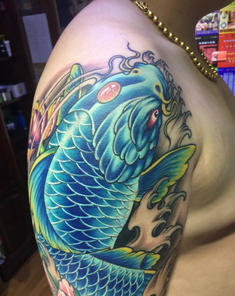 当前位置: 首页 >吉林省长春市纹身店-彫客堂刺青纹身图案>大臂鲤鱼遮盖纹身前后对比纹身图片