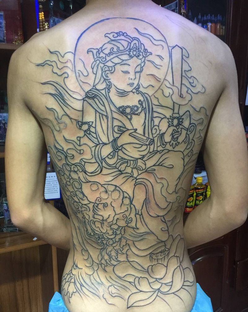 文殊菩萨未完成待续纹身图片_背部传统人物纹身图案