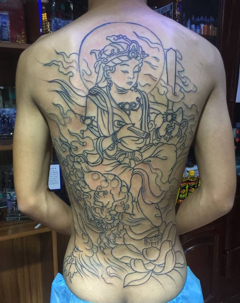 文殊菩萨未完成待续纹身图片_背部传统人物纹身图案