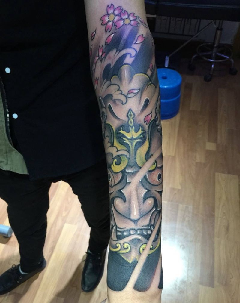 小臂般若修改前后对比纹身图片_成品手臂传统遮盖纹身图案
