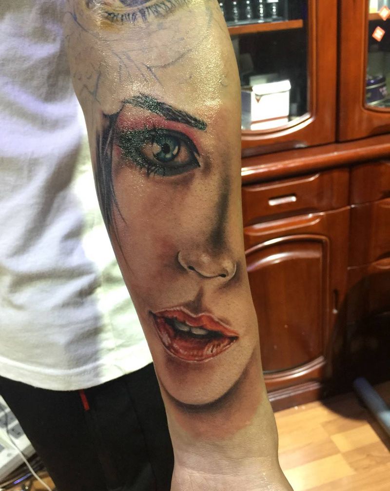 当前位置: 首页 >吉林省长春市纹身店-彫客堂刺青纹身图案>写实美女纹身图片_手臂写实欧美肖像原创人物纹身图案