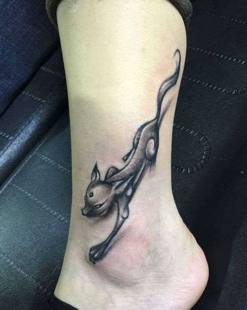小狐狸纹身图片_原创清新成品腿部纹身图案