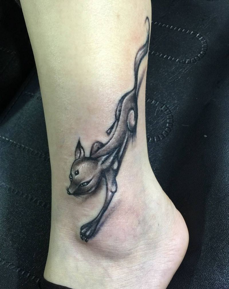 小狐狸纹身图片_原创清新成品腿部纹身图案