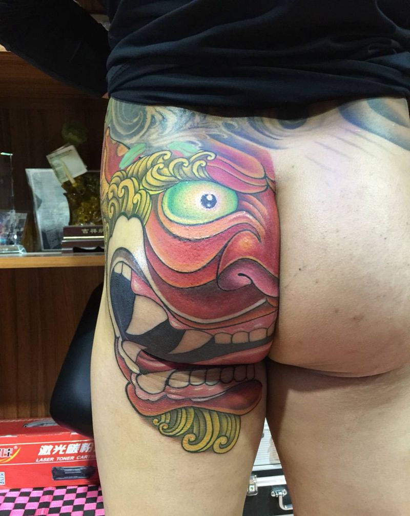 当前位置: 首页 >吉林省长春市纹身店-彫客堂刺青纹身图案>AB面唐狮 未完成待续纹身图片