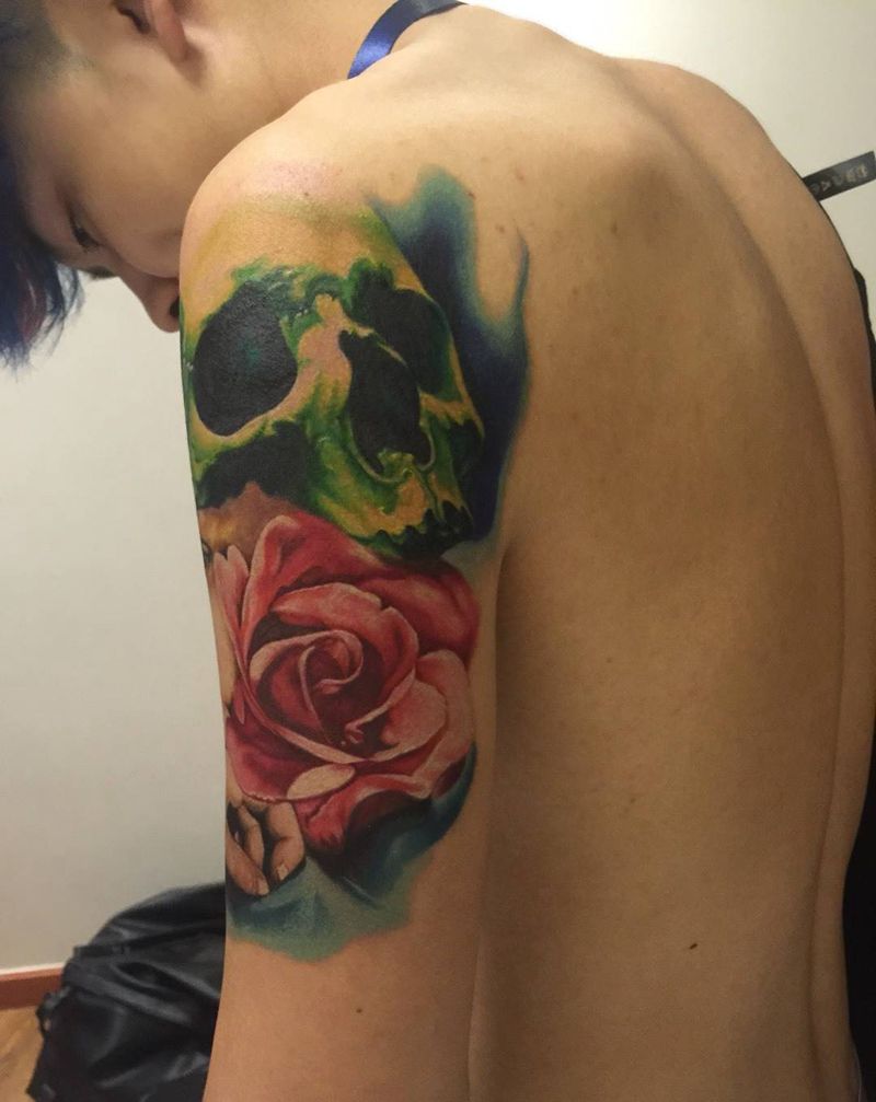 美女骷髅纹身图片_成品手臂欧美人物纹身图案