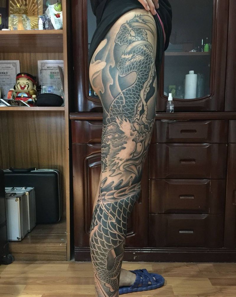 当前位置: 首页 >吉林省长春市纹身店-彫客堂刺青纹身图案>神龙盘腿再现纹身图片_腿部传统原创动物纹身图案